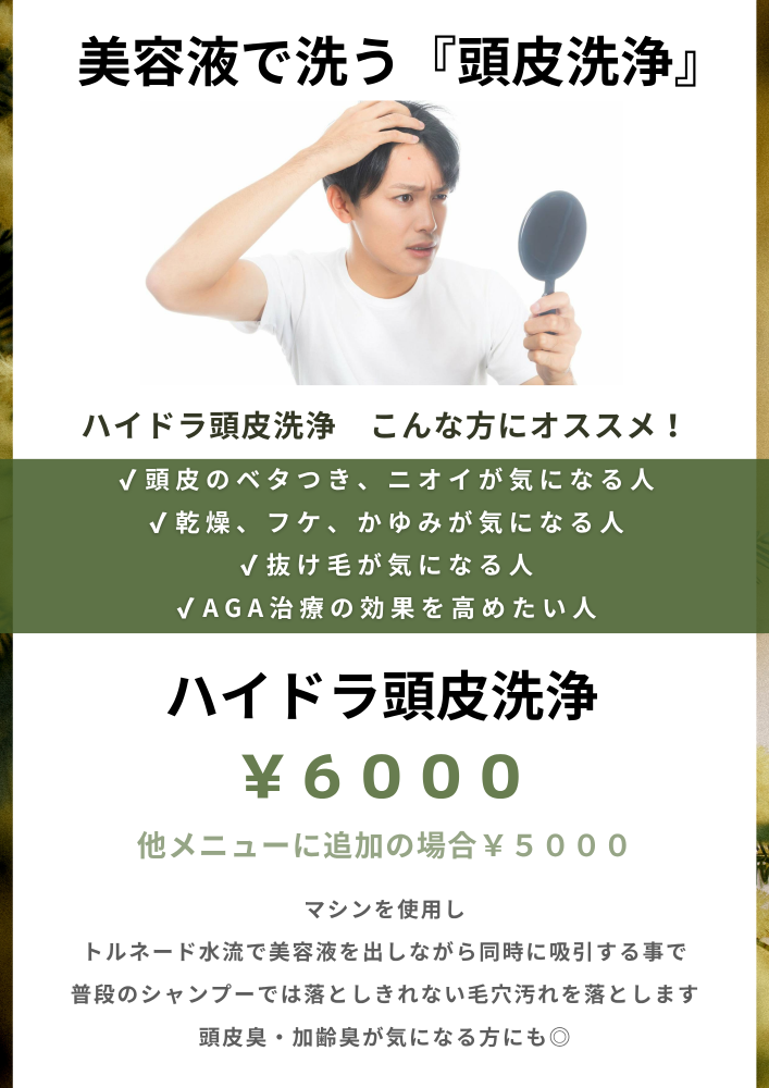 | ハイドラ頭皮洗浄 1回¥6,000 |